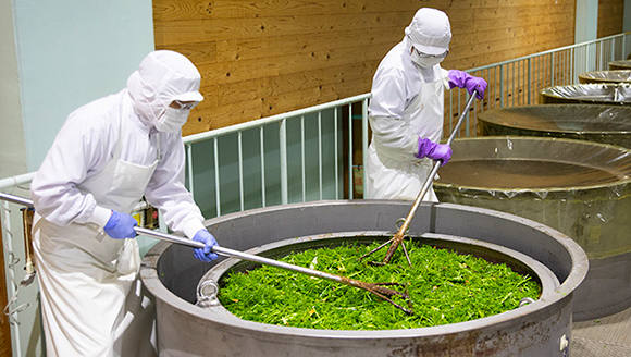 - 野菜に付着した乳酸菌などのチカラで発酵させる伝統的な製法。旬の野菜とミネラルを含んだ黒糖を発酵させ、栄養価を高めています。